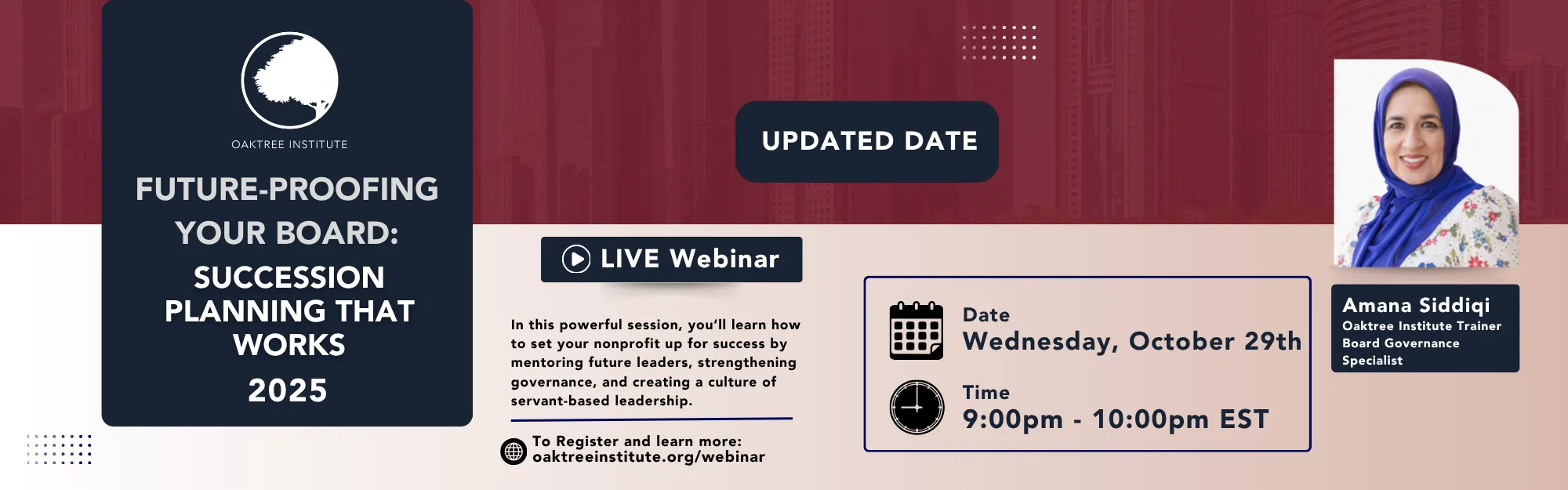 In this important webinar, you’ll learn how to set your nonprofit up for success by mentoring future leaders, strengthening governance, and creating a culture of servant-based leadership. Amana Siddiqi will share proven strategies for ensuring smooth transitions, sustaining your mission, and empowering your team to rise with clarity and confidence.